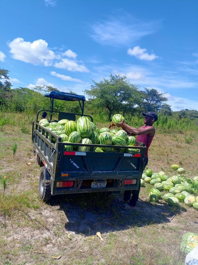 Growing food crops for is a crucial part of Eternal Families Tanzania’s vision for sustainability. The Mabama and Useko crop farms are about 45 minutes away from Village 1. The land has been in a process of removing trees, roots, ant hills and bush since 2020 to begin farming. We have cleared 120 acres and are growing white corn, sunflowers (to be crushed for cooking oil), peanuts, rice, and sweet potatoes. We also grow watermelon during the dry season and use the well to irrigate the crop. Future plans include growing tomatoes and other vegetable crops. Management of the crop farm is under the careful supervision of Andrew and his ten workers. They live on the farm and work diligently to do 90% of the work of planting, cultivation, and harvest by hand. We are fortunate to have some equipment through the generous support of donors such as a tractor, planter, disc harrow and wagon. We also have a diesel-powered corn sheller. We have worked closely with Tumbi Agricultural Research College to soil test our farms and find ways to increase our production. Our soil is low pH and needs lime. It also requires the application of manure to improve organic material in the land and increase fertility.